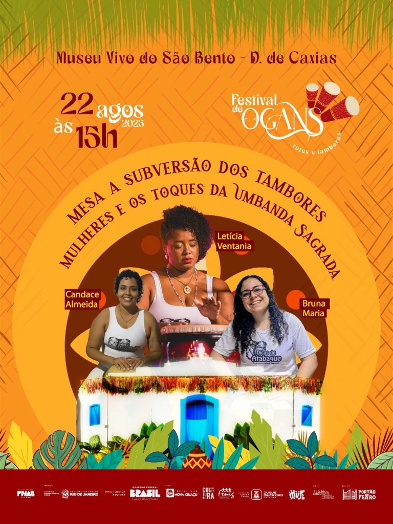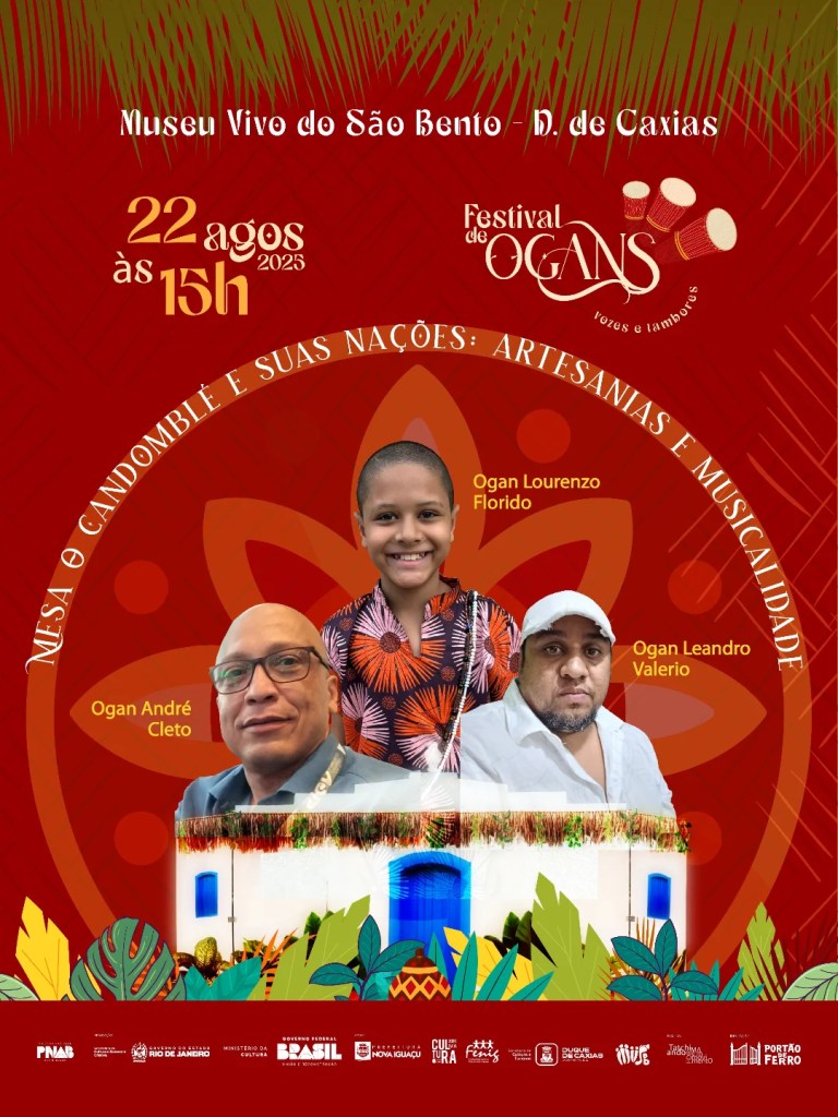 O Museu Vivo do São Bento (MVSB) vai receber em sua Sede Administrativa o “Festival de Ogans Vozes e Tambores”, na próxima sexta-feira (22). O evento é uma iniciativa cultural que apresenta as práticas musicais ligadas à percussão e às expressões das religiões de matriz africana, como o candomblé e a umbanda, na Baixada Fluminense.